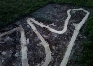 En el sitio se observaron vialidades construidas con material pétreo, nivelación del terreno y un circuito cerrado diseñado para actividades deportivas de motocross, con obstáculos, saltos y curvas pronunciadas.