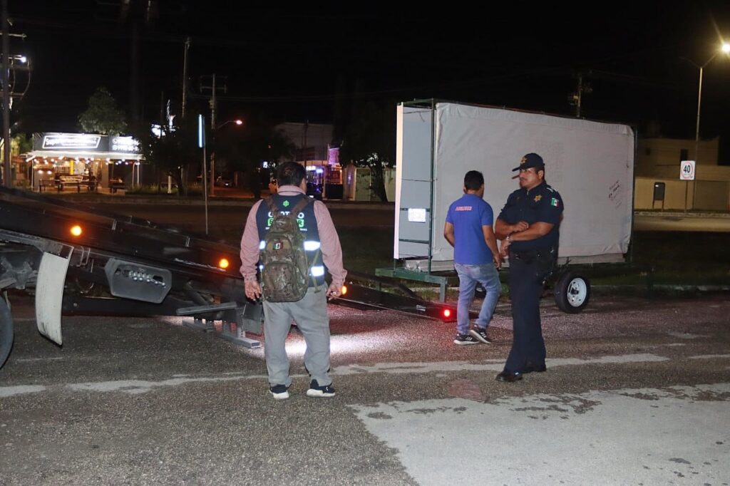 En un segundo operativo efectuado sobre la Avenida 24 del Fraccionamiento Santa Gertrudis Copó, a la altura de la plaza comercial «La Isla», fueron retiradas dos unidades móviles de venta de alimentos tipo “foodtruck”, dedicadas a la venta de tortas y tacos.